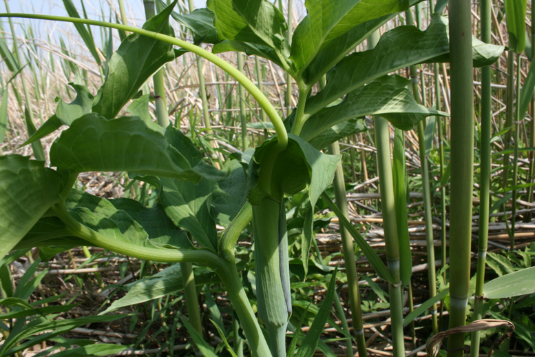 マムシグサやウラシマソウと比べると随分小さくて色もグロくない綺麗な緑色。