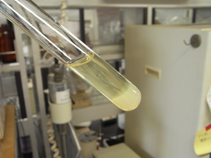で、問題のスラント培地ですが、案の定変な固まり方してました。